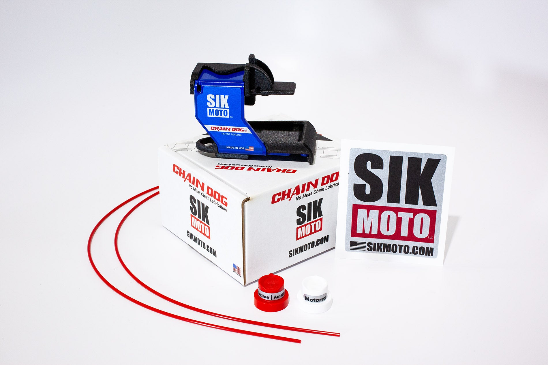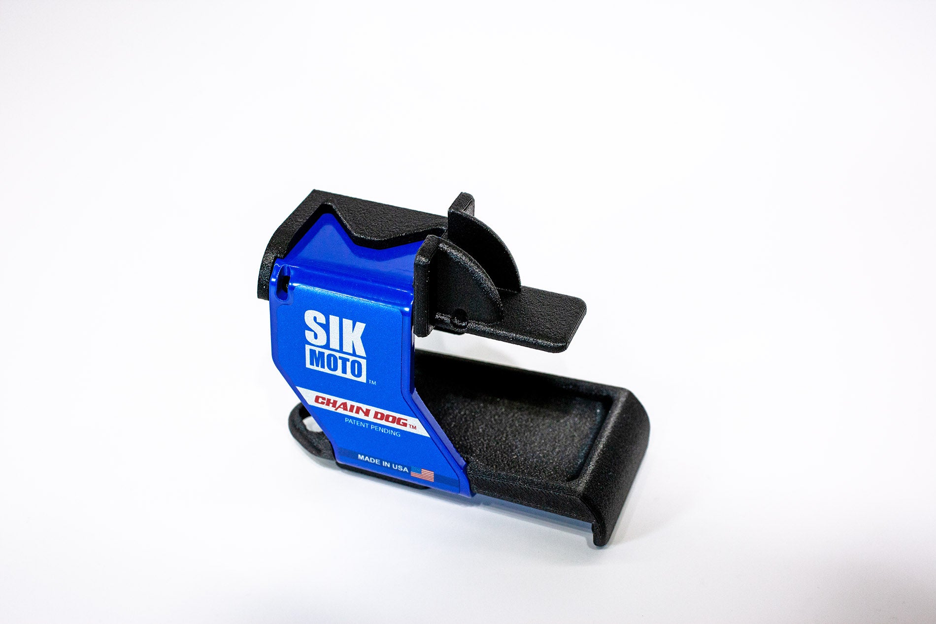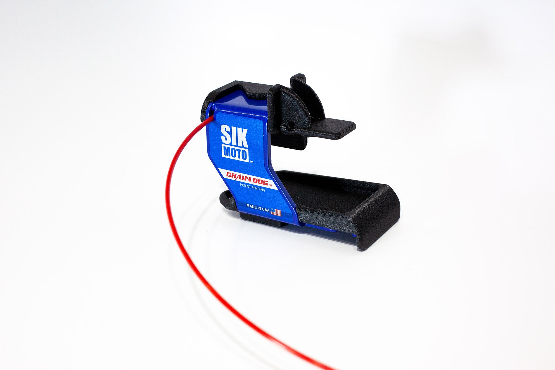The Chain Dog™ is your solution if you've had issues with chain lube coverage or overspray when servicing your dirt bike chain. It uses a dual nozzle design to precisely apply lubricant to critical pivot and wear points. The drip tray saves your shop floor, garage floor or custom bike mat from messy chain lube overspray. When you're done lubing your dirt bike chain, easily store the Chain Dog™ on the side of your toolbox with the integrated magnetic base. Made in the USA from carbon fiber reinforced ASA and powder coated aluminum, the Chain Dog™ has durable construction that handles repeated use without compromise. Whether you're a professional dirt bike mechanic or you're maintaining your own bike, the Chain Dog™ is an excellent choice for streamlining chain maintenance.